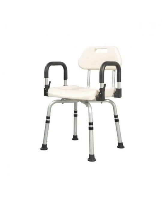 Η καρέκλα μπάνιου προσφέρει στήριξη και ανεξαρτησία κατά το ντους, μειώνοντας την κόπωση και τους κινδύνους ολίσθησης. Διαθέτει αντιολισθητικά πόδια, ρυθμιζόμενο ύψος, αναπαυτική πλάτη και περιστροφή 360° για ευκολία στη χρήση. Ελαφριά και σταθερή, είναι ιδανική για άτομα με περιορισμένη κινητικότητα.