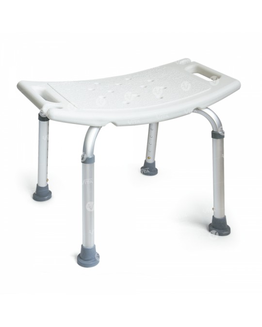 Ελαφρύς, αδιάβροχος σκελετός αλουµινίου ρυθµιζόµενου ύψους. Εργονοµικό κάθισµα µε χειρολαβές. Τα πόδια της βάσης έχουν κλίση γωνίας ώστε να επιµερίζεται το βάρος του χρήστη µε ασφάλεια. Αντιολισθητικές τάπες. Αποθηκεύεται εύκολα.